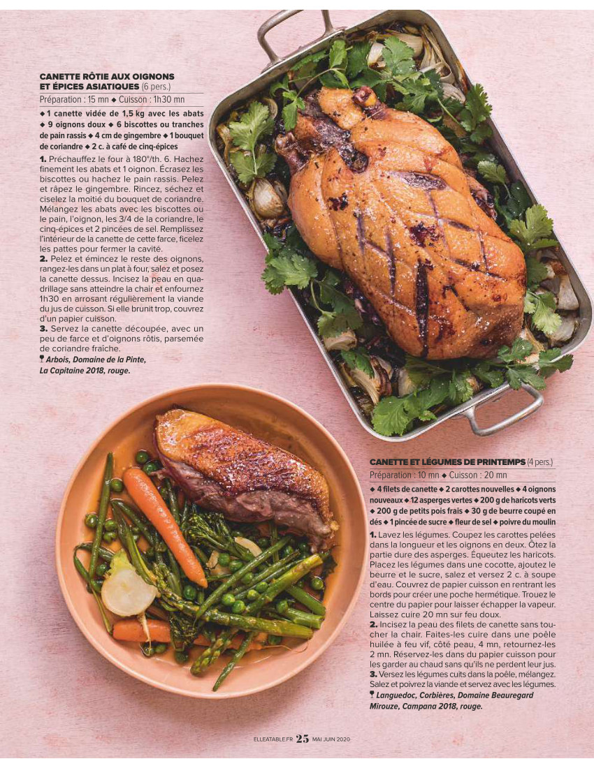 et en ligne : https://www.elle.fr/Elle-a-Table/Recettes-de-cuisine/Canette-et-legumes-de-printemps-3863377