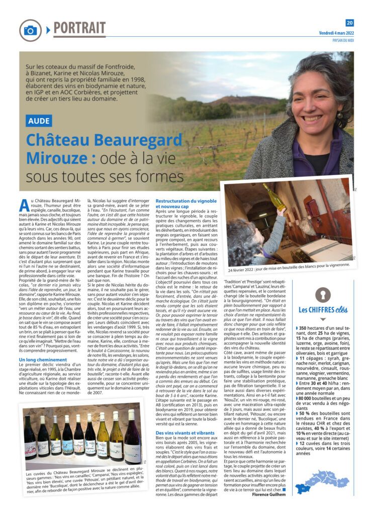 Navigation rapide : Accueil / Presse / Paysan du midi – « Château Beauregard Mirouze : ode à la vie sous toutes ses formes »